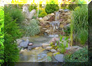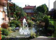 Частен двор в Банкя - воден ефект с поточе рибки и богата растителност.