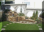 Частен двор във Владо Тричков - водна каскада, озеленяване и осветление. Биологично филтриране на водата.