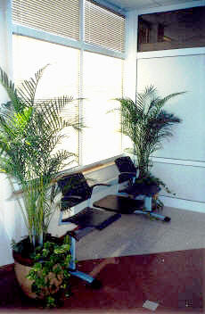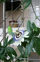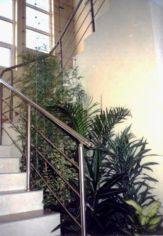 Колона от стоманени въжета в стълбищното пространство за разполагане на увивна растителност.