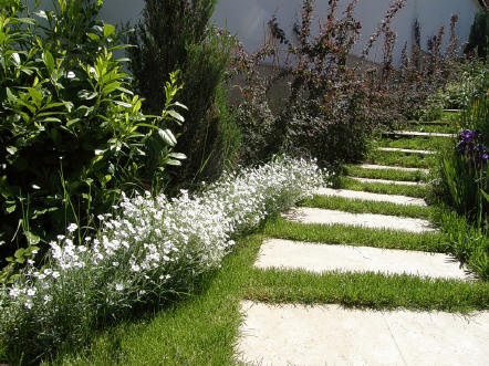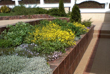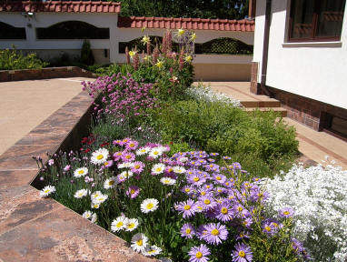 Частен двор в с. Казичане. Изчистена композиция с акцент на формите на растенията.