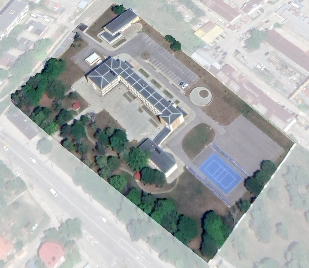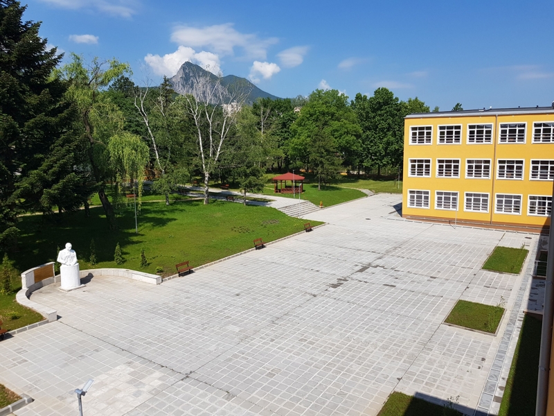 Медицински университет - филиал Враца. Реконструкция на бившия Химически техникум във филиал на Медицински университет - София. Едно от малкото места, където асфалта зе заменя със зелени площи.