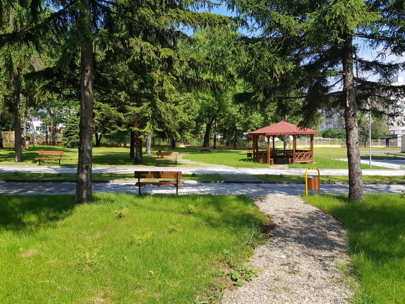 Създава се спортна инфраструктура както в закрития спортен салон, така и в комбинираното игрище с акрилна настилка и прилежащите му трибуни. Оформя се и свободна пътека в зоната с дървесна растителност за навлизане в сянката на дърветата и достъп до двете беседки.