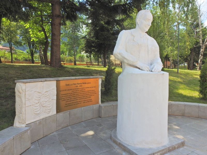 Площадното пространство зад сградата с паметника на проф. д-р Иван Митев д.м.н. - патрон на филиала на Медицински университет - Враца и откривателят на шестия сърдечен тон.
